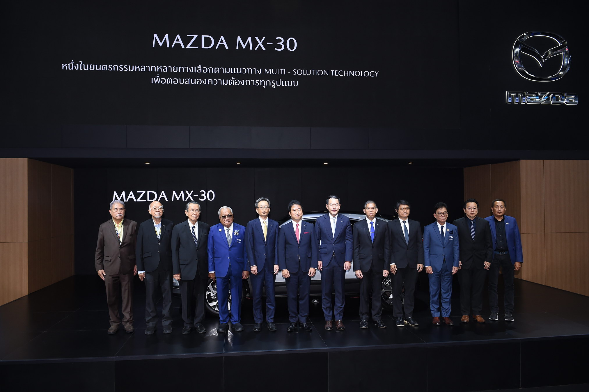 Bangkok, Thailand – 21 March 2023 – Mr. Tadashi Miura, the president together with Mazda Sales Thailand executives welcome Dr. Prachin Eamlumnow, Chief Executive Officer of Grand Prix International Public Company Limited and Chairman of Bangkok International Motor and honorary media. The media views the Mazda MX-30 that comes with the technology of the future based on Multi-solution Technology and all models of Mazda cars under SKYACTIV technology and elegant KODO designs that are displaying at the Mazda booth. The promotional campaign of the year is also provided with 0%* minimum down payment, free 1-year Mazda Premium Insurance, free 5-year Mazda Ultimate Service* and free a special premium gift* from March 22, 2023 to April 2, 2023 at the Motor Show and Mazda showroom nationwide. The cars are ready to be delivered.