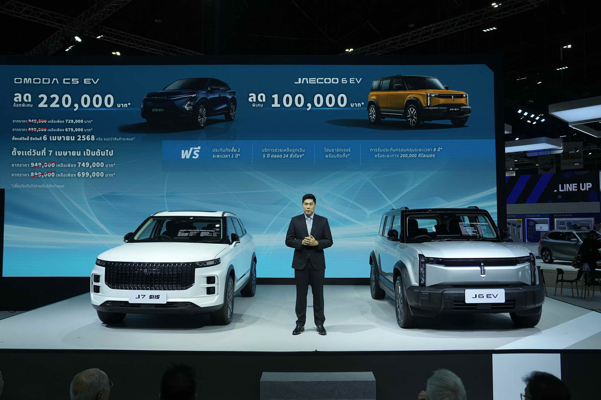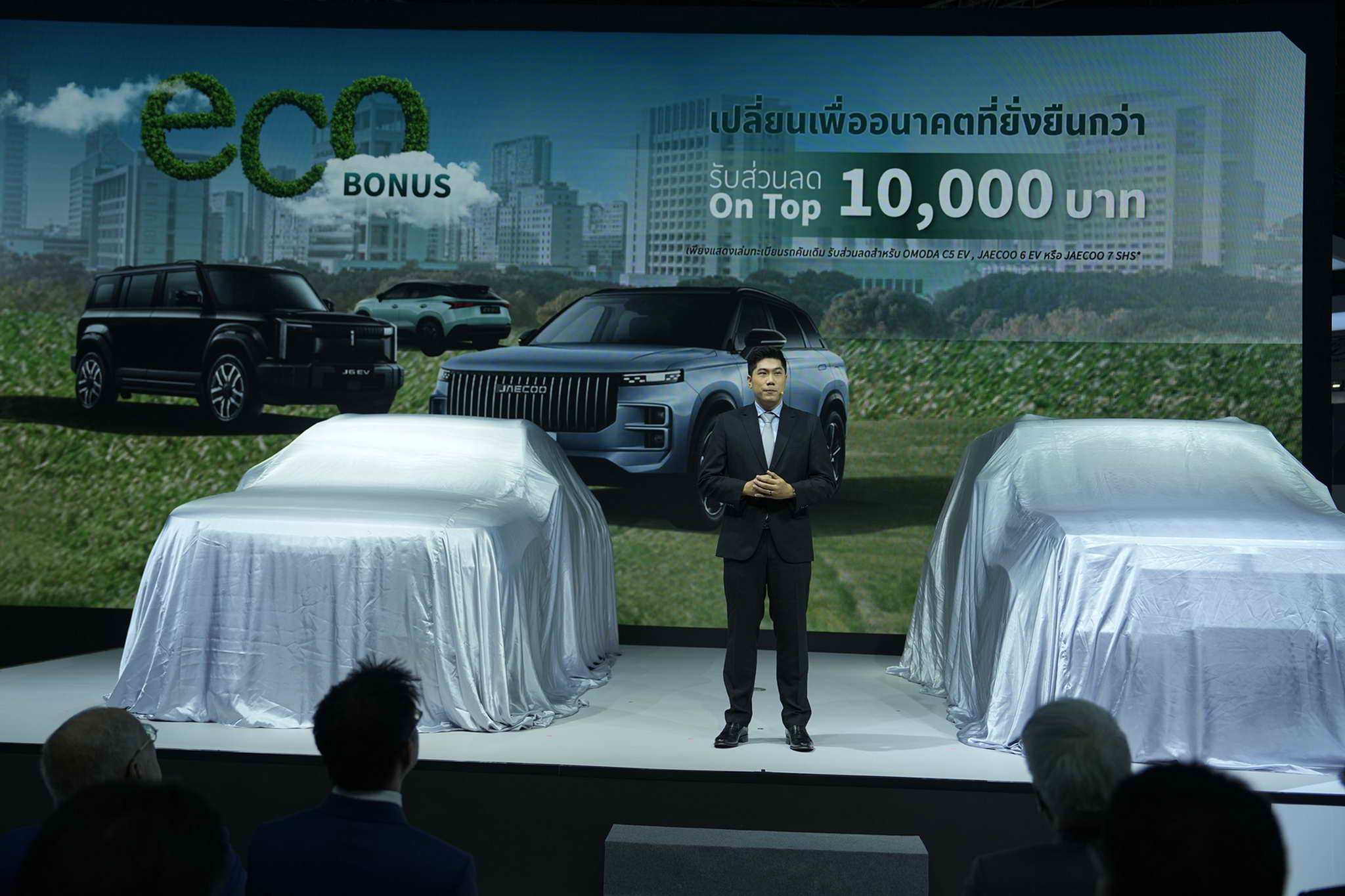 | ECO BONUS | Giving a donation of 10,000 baht Simply show your HEV registration book when purchasing the OMODA C5 EV or JAECOO 6 EV from March 24 to April 30 and the JAECOO 7 SHS from March 24 to April 6. |